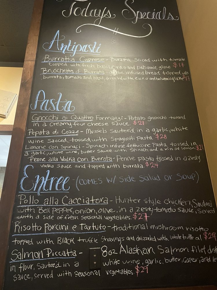 The menu boasts an array of mouth-watering entrees such as Agnello Pepato, Bistecca a Cubetti, and Fettuccine Amore Mio, along with delectable antipasti including Bruschetta Invernale and Ravioli Formaggi Tostati. The restaurant also offers a full bar and outdoor seating, making it a perfect spot for a casual lunch or a romantic dinner.